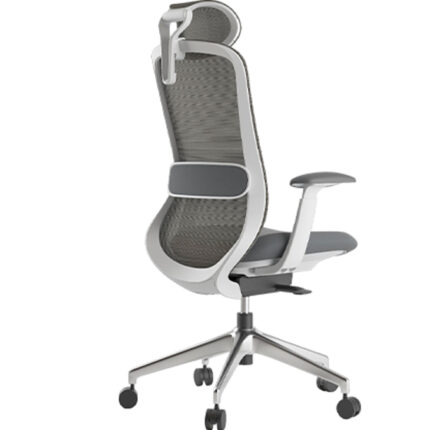 Respaldo en malla negra o gris, con soporte lumbar ajustable.